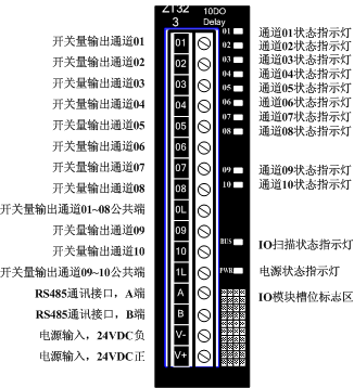 ZT323是10通道開關量輸出模塊,內部采用繼電器輸出,觸點容量為220VAC0.5A。ZT323和CPU模塊一起拼裝使用時, CPU模塊CPU314-2C會在寄存器區為其分配12個映射寄存器。詳見《寄存器分配規則》。