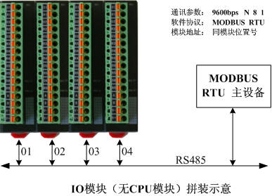 ZT321自帶一個RS485通訊口,內部封裝了MODBUS協議,可以獨立工作,MODBUS從站地址等于從左向右排列的位置號。