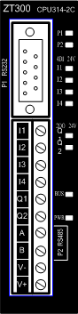 PU314-2C是ZT300系列IO模塊的主控模塊,在多個模塊組合使用時作為主控模塊使用。CPU314-2C提供RS232和RS485接口各一個,可以同時使用。用戶可以訪問全部的寄存器,寄存器表見附表。